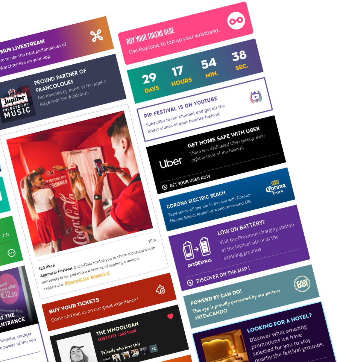Appmiral facilitates festival organizers to embed their sponsors into the app. Sponsors support the success of your event ? so it only makes sense to give them some digital stage time too.