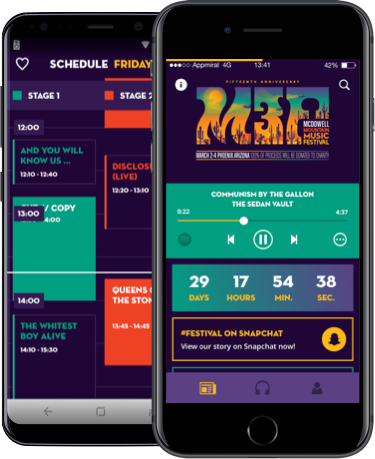 Welcome to the official app for the 2018 McDowell Mountain Music Festival (M3F), Arizona?s 100% non-profit festival.